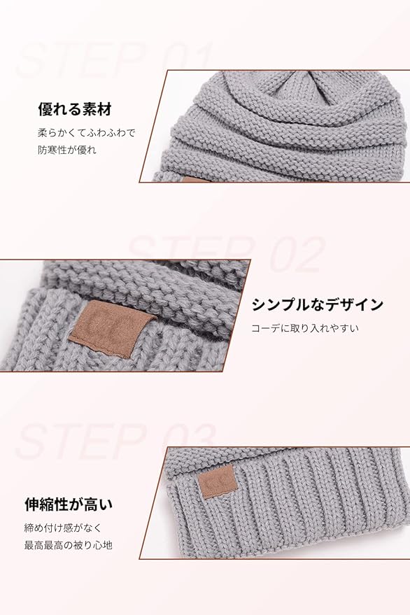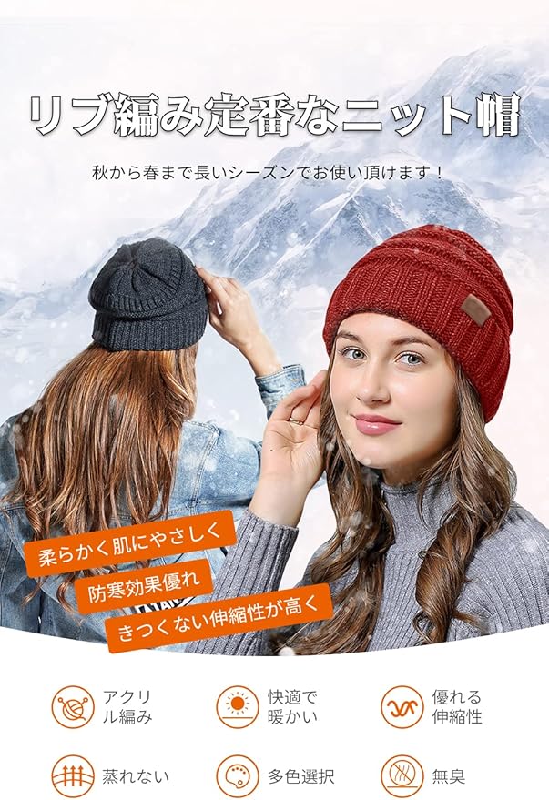 【ストレッチ性抜群】頭周りに49-55cmのフリーサイズにして伸缩性に優れて、性別・年齢問わずにほとんどの人に適しています。ニットキャップは伸縮性良い、頭に自然にフィットし、引き締めを感じさせない、頭を包み込む軽い被り心地です。柔らかく折りたためてカバンに簡単に収納し、お出掛けの際、バッグにおくと便利です。