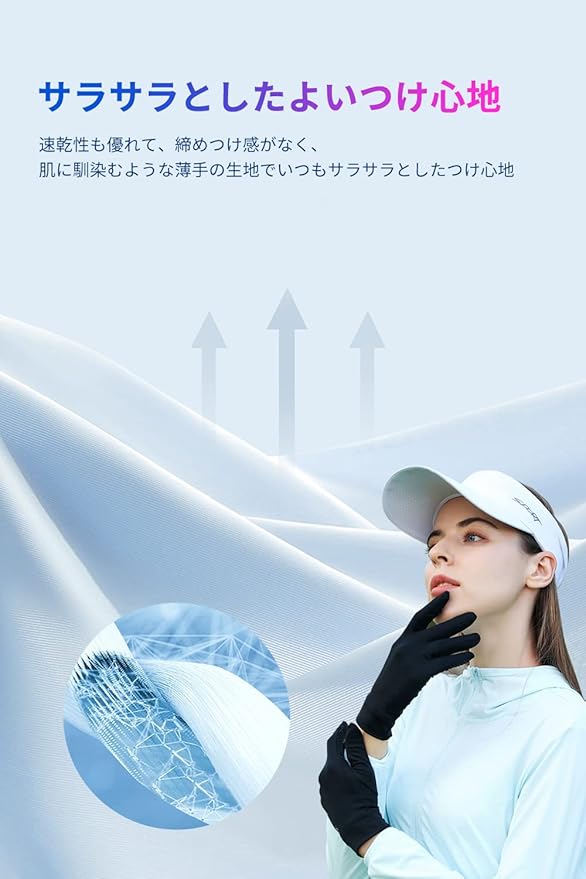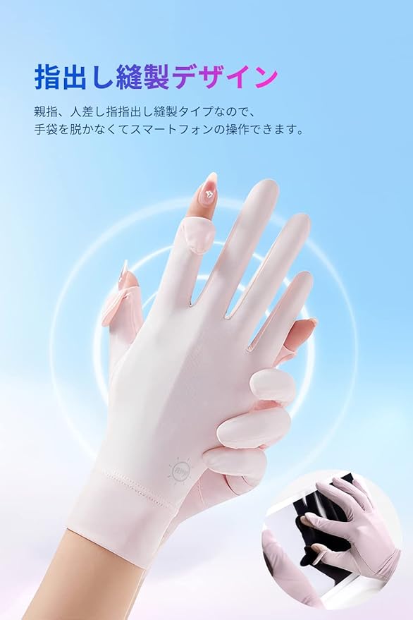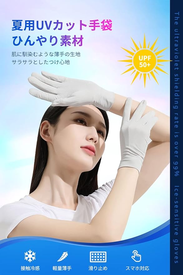 【UVカット手袋】紫外線対策、手を保護し、日焼け止め効果抜群。紫外線90-95%カットから手肌を守り、夏にピッタリとするレディース用UVカット手袋です。 蒸し暑くないいメッシュ素材、肌に馴染むような薄手の生地で、快適なつけ心地です。UVカートだけでなく、出かける時に、接触感染を防止にも役が立てます。