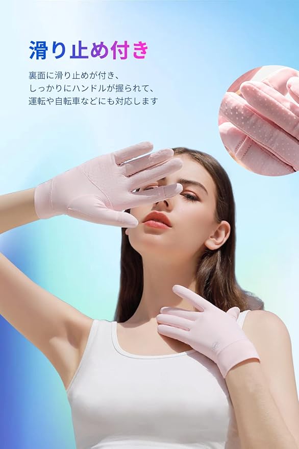 【運転にも対応】指と手のひらの上半分には滑り止め付きますので、運転や自転車などにも対応できます。しっかりハンドルが握られて、安全性も高いです。