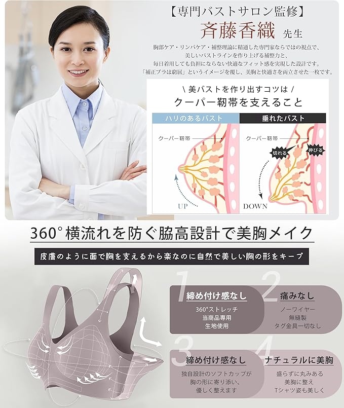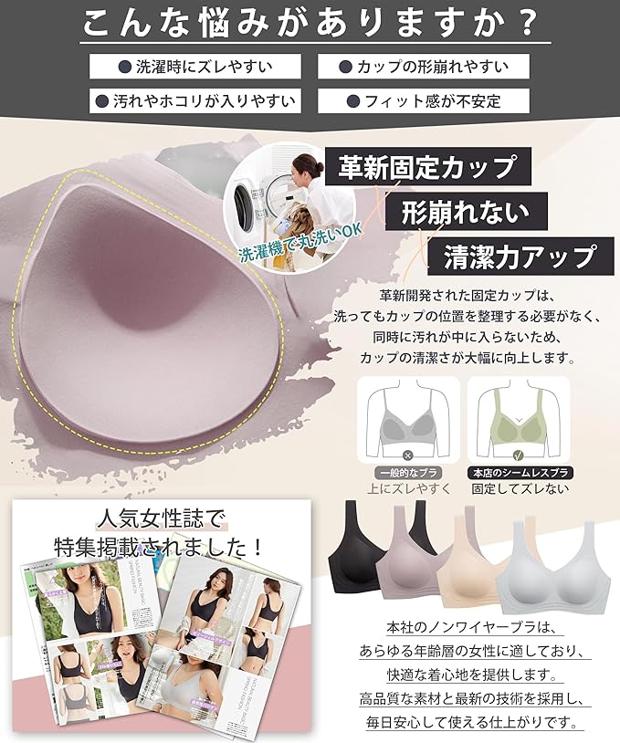 [Lavento] 専門バストサロン監修 ノンワイヤーブラ シームレスブラ ぶら 【革新固定カップ・形崩れない・清潔力アップ】 ノンワイヤー 脇高設計 吸汗速乾 美胸美背 伸縮性 肌にやさしい 無縫製