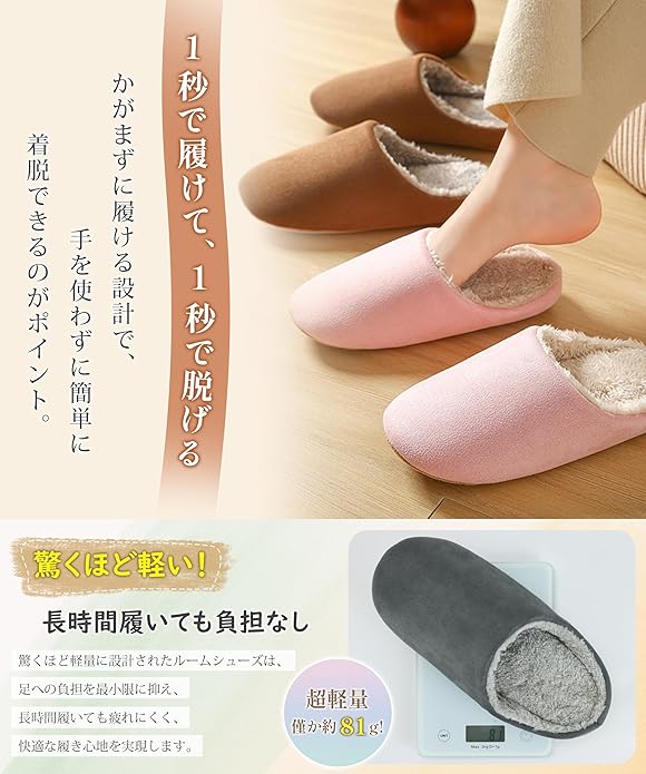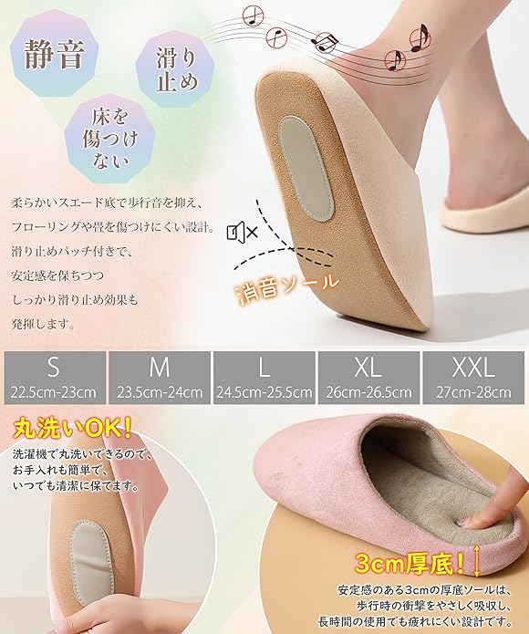 【驚くほど軽い!長時間履いても負担なし】驚くほど軽量に設計されたルームシューズは足への負担を最小限に抑え、長時間の使用でも疲れにくく、快適な履き心地を実現し、防音ソール設計で歩く音をしっかり抑えてくれるので、集合住宅や夜間でも安心して使えます。さらに、洗濯機で丸洗いできるので、お手入れも簡単で、いつでも清潔に保てます。春・秋・冬の3シーズンに対応しており、冷えやすい足元をしっかりと守ります。デザインもシンプルで男女問わず使いやすく、家族でおそろいにするのもおすすめです。