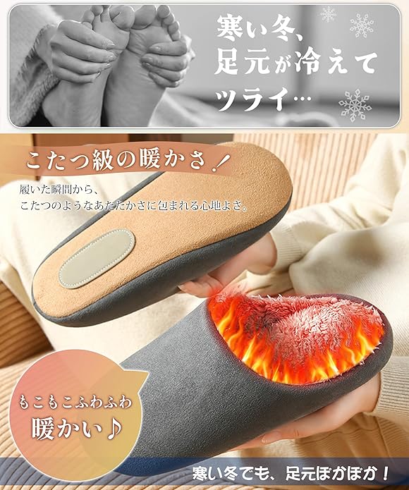 【こたつ級の暖かさ!冬用スリッパ】ふんわり極厚の裏パイルインソールが足全体をやさしく包み込み、厚手の裏起毛が熱を逃さずキープし、空気の層を作ることで、普通のスリッパよりも高い蓄熱保温性を実現します。見た目もかわいいふわふわのデザインで、履いた瞬間からまるでこたつに足を入れたような心地よさを体感できます。リラックスタイムやおうち時間をより快適にしてくれる冬の必須アイテムです。