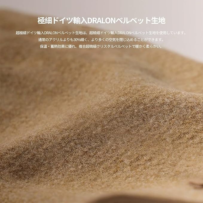 【高品質 素材】高品質のドラロン素材を使用し、裏起毛で手をしっかり暖めます。手袋を着用すると、ハンドクリームのように肌の潤いを保ち、手荒れや乾燥から守ります。柔らかく滑らかな肌触りで、快適な装着感を提供します。