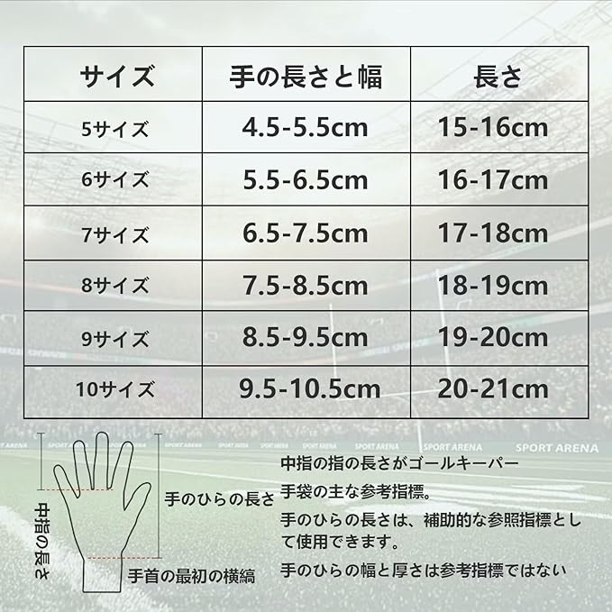【キーパーグローブは3サイズ選択】キーパーグローブのサイズについては、サイズ8、9、10(大人用)。詳細はサイズ表をご参照ください。
