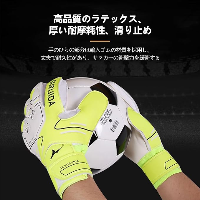 【強化された指】キーパーグローブの指部分は強化されています。これにより、怪我を防ぐために追加のサポートを提供し、長期間の使用にも耐えます。