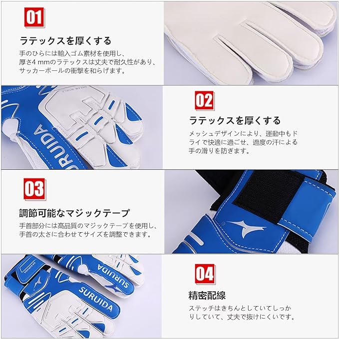 ZVCXOE キーパーグローブ サッカー 手袋 トラテックス レーニング用 と大人用 グローブ 耐摩耗性 通気性 滑り止め 練習 試合用 サイズ 8/9/10 ブルー