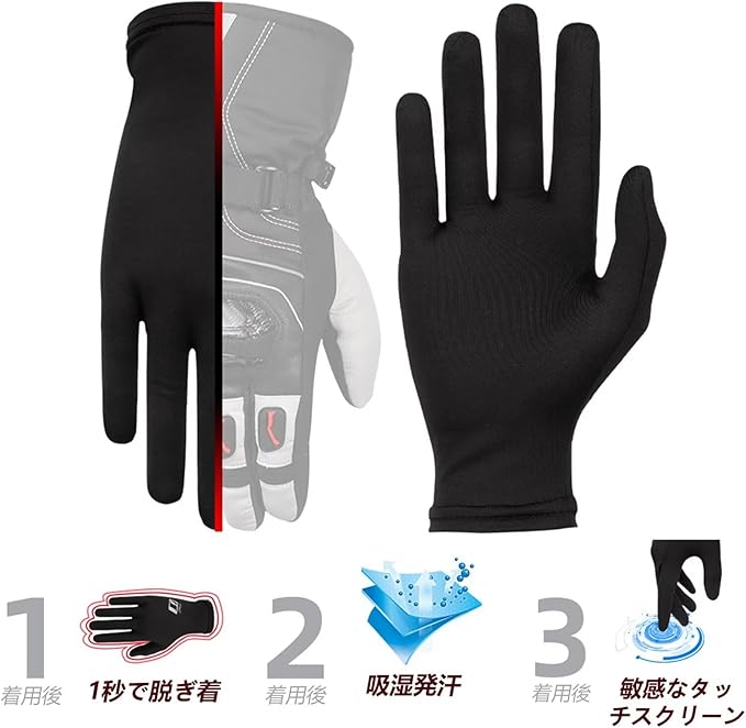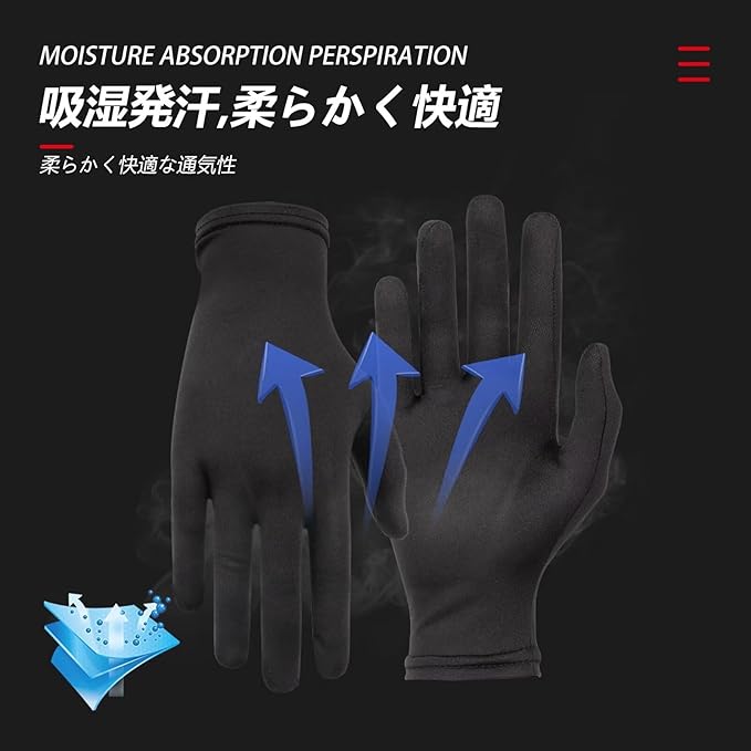 [ZVCXOE] インナーグローブ バイク用手袋 UVカット 汗止め クール 接触冷感 薄型 速乾 1秒着脱 伸縮性 超軽量 スキー サイクリング フリーサイズ 男女兼用
