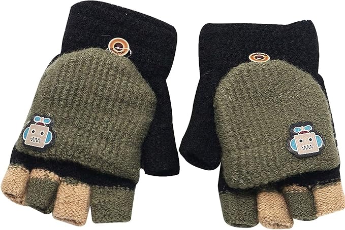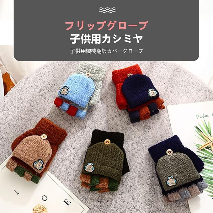 [ZVCXOE] キッズ 手袋 ニット グローブ 子供用 男の子 女の子 ミトンカバー付き 指切り 半指 2 WAY 防寒 赤ちゃん ベビー 冬物 あったか 雪遊び 通園 通学 可愛い