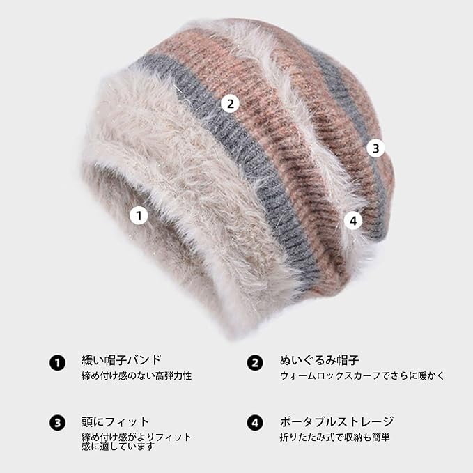 【柔らかい肌触り】肌に優しいニット素材で作られたこの帽子は、柔らかい感触で快適にかぶれます。敏感肌の方にも安心して使用でき、肌への刺激を最小限に抑えます。秋冬の季節でも清潔に保ちやすく、耐久性も高く、長く使えるのが特徴です。また、使用しないときはコンパクトに折りたたんでカバンに収納可能で、持ち運びにも便利です。