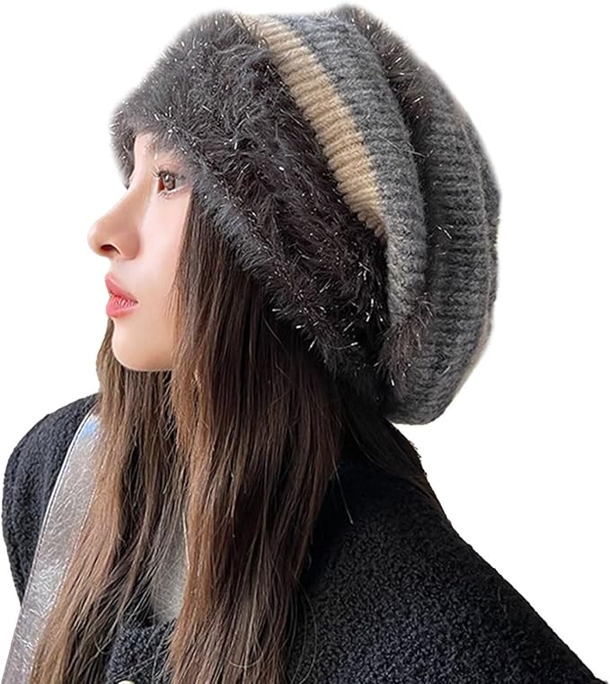 [ZVCXOE] ニット帽子 レディース 秋冬 ビーニー 女性防寒帽子 ニットキャップ 厚手 柔らかい 防寒防風 保温 リブ編み 伸縮性 ゆったり 暖かい 軽量 通勤 通学 自転車 スキー アウトドア 登山 頭囲適用範囲 55-60CM