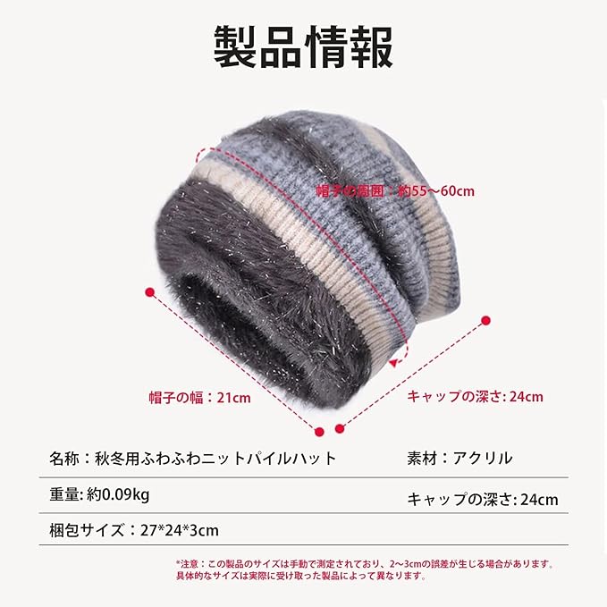 【小顔効果】頭囲55~60cmの方にぴったりで、優れた伸縮性があるため、きつく感じることなく自然にフィットします。前後の長さがやや長めにデザインされており、大きな頭にも優しくフィットし、暖かさも提供。デザインが深めなので、顔周りをカバーして小顔効果も期待できます。寒い季節に冷たい風から頭を守ります。