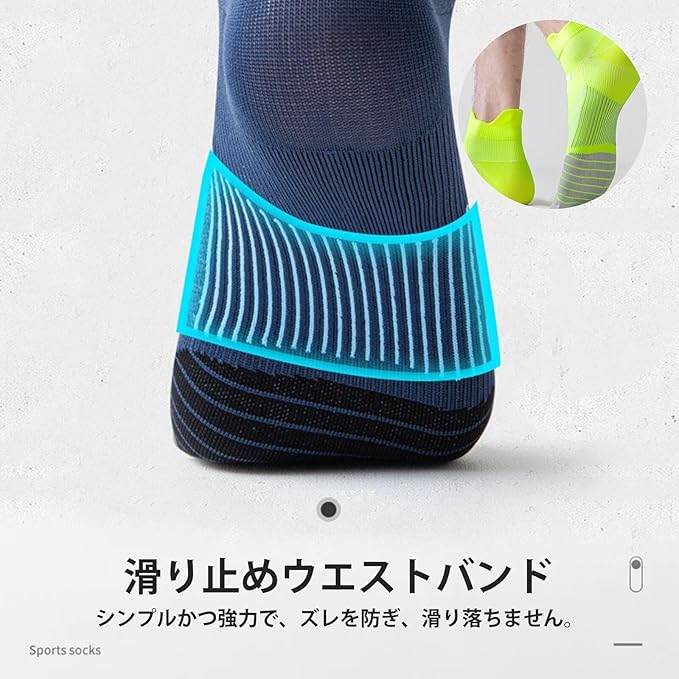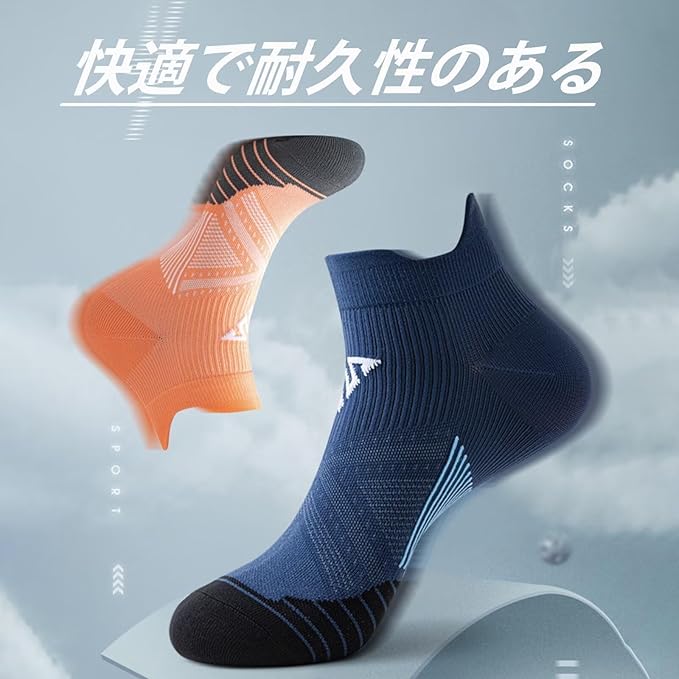 【クッション性】薄手のソックスですが、素足に近い感覚でありながらもしっかりとしたクッション性を提供し、長時間のトレーニングに適しています。
