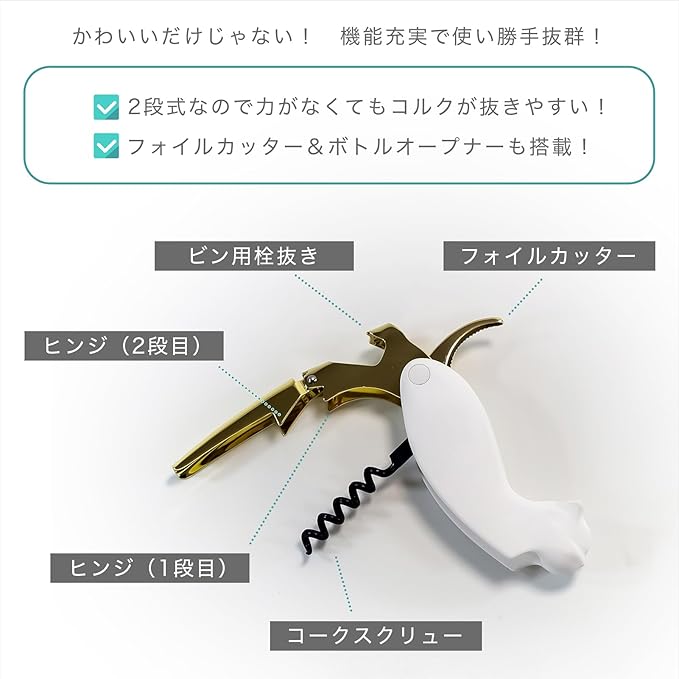 【贈り物にもおすすめ】コンパクトで見た目が可愛く、遊び心があって機能も充実したこのアイテムは、持っていて困ることのない逸品です。ご自身でのご使用はもちろん、猫好きやワイン愛好家へのプレゼントに。また、お引越しや新築祝いなどのプレゼントとしてもおススメです!