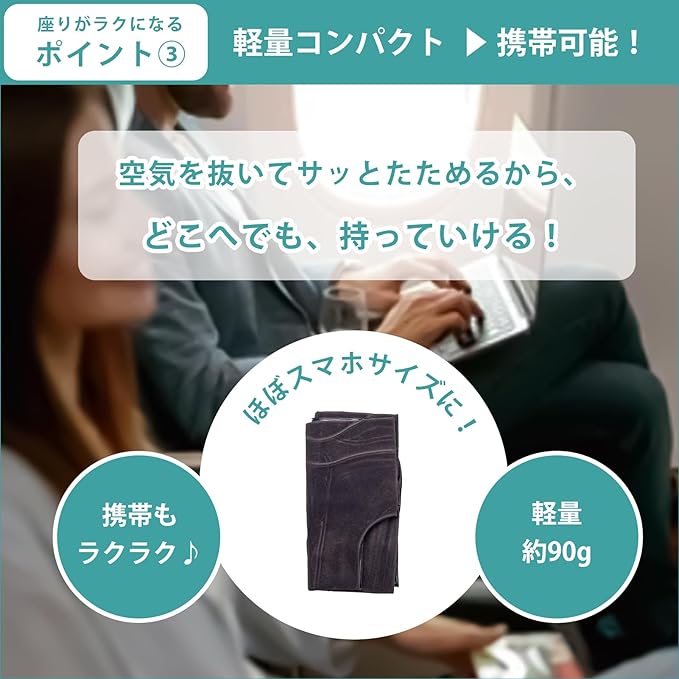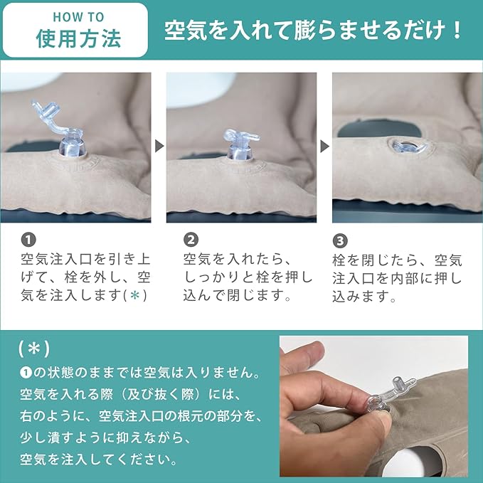 【 軽量&コンパクト!持ち運びもラクラク 】 使わないときは空気を抜いてコンパクトに収納可能!軽量設計なので、旅行・オフィス・アウトドア・車の中など、どこへでも簡単に持ち運べます。落ち着いたカラーで、どんな場所でもなじみやすいデザインです。