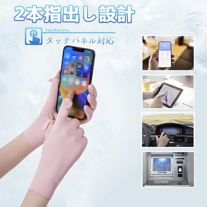 【両手とも2指出し設計でスマホ対応】UVカット手袋は両手の差し指と親指の指先部分は指出せる設計でどこでも手袋を外さずにスマホやタブレットなどを楽々スマホ操作していただけます。通勤やドライブ、ガーデニングなどの作業も邪魔にならず、快適に使えるUVカットグローブです。