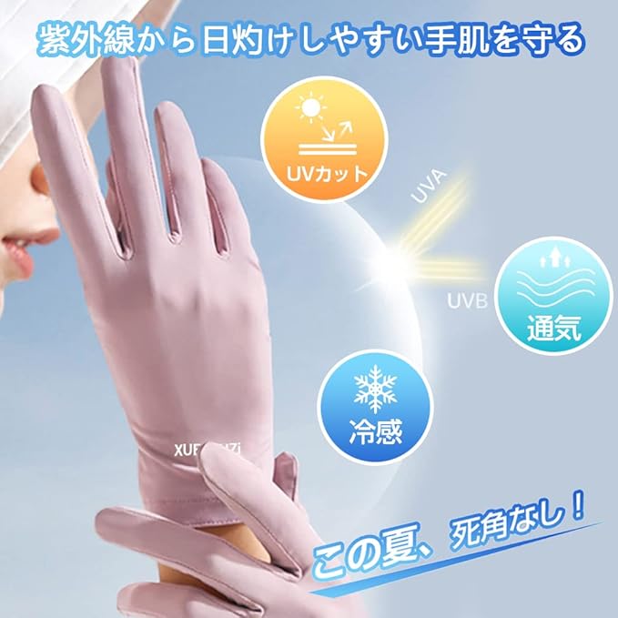 【UVカット手袋/紫外線対策】日焼けをすると、皮膚のバリア機能にダメージを与えるため肌が乾燥、老化しやすくなります。暑い夏の時期で紫外線対策から日灼けしやすい手を守ることが重要になります。レディース手袋のUVカット率は98%以上であり、高エネルギーの紫外線を強力に吸収することで紫外線から手肌を守り、夏にピッタリとするUVカット手袋です。