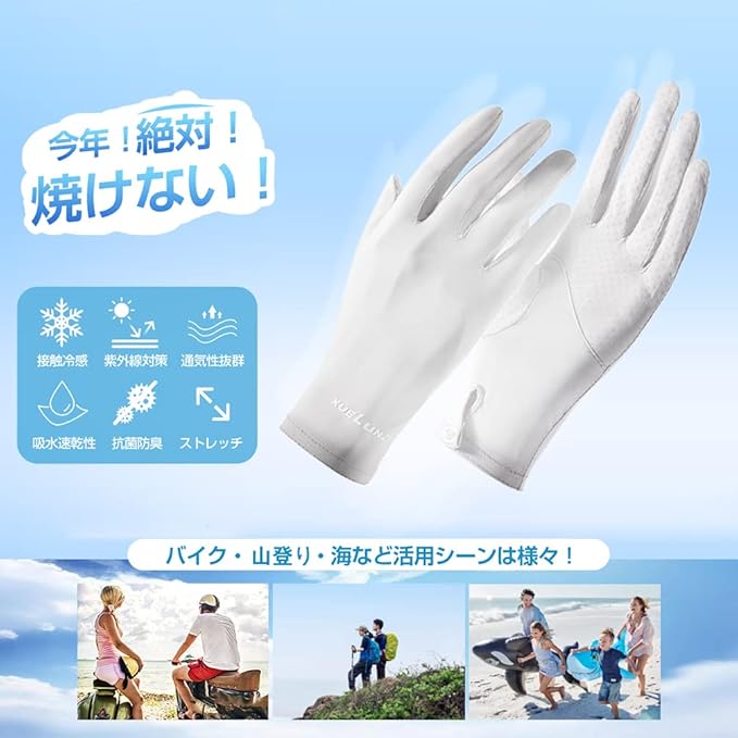 【多用途/簡単に紫外線対策】外出時に大活躍してくれるUV手袋が登場!日焼け対策に嬉しいUVカット機能と接触冷感はお出かけに最適♪サイクリング、ジョギング、テニス、ゴルフ、釣り、徒歩、山登り、旅行、車の運転、農作業、ガーデニングなど日常の日焼き止めやアウトドア活動に大活躍します。