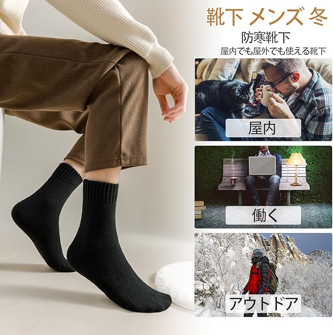 【多用途ソックス】スタイリッシュさと快適さを兼ね備えた靴下 メンズ 厚手。ご自宅、職場、ハイキング、スキー、登山など、あらゆるシーンで活躍するこのソックスは、優れた快適性を提供し、冬の厳しい寒さや様々なアクティビティにも楽々と対応します。