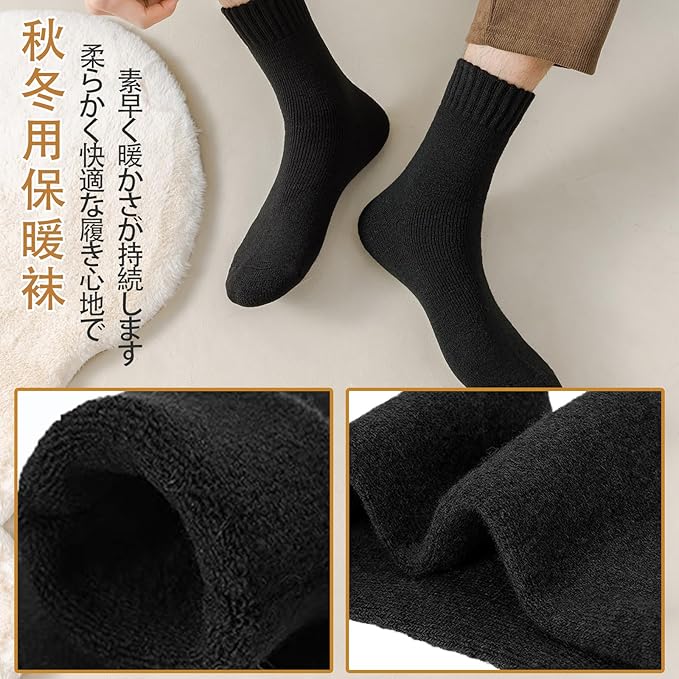 [Wamicu] 靴下 メンズ 冬 暖かい 厚手 5足セット あったかい 防寒保温 耐久性 伸縮性 ソックス 室内 アウトドア キャンプ 登山 キャンプ 24-28cm