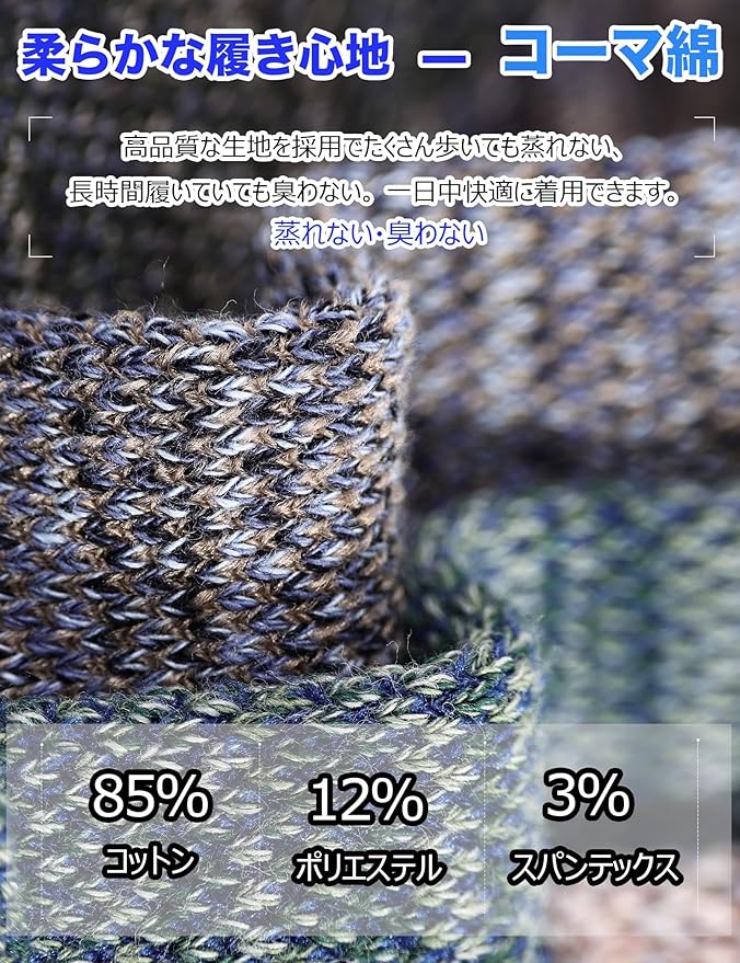 ❀「品質良いコーマ綿」天然なコーマ綿を採用でたくさん歩いても靴下はズレない、長時間履いていても蒸れない。 一日中快適に着用できます。