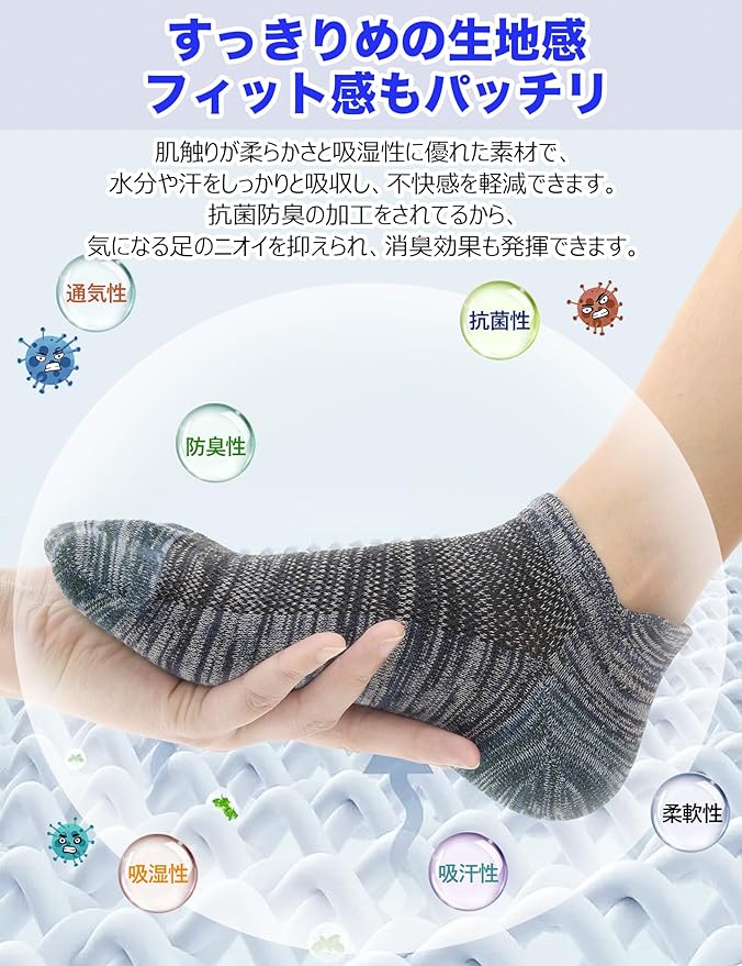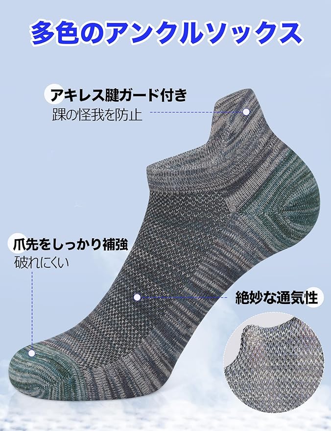❀「アキレス腱ガード付き」このアンクルソックスは人体工学に基づいて設計されたデザインで、アキレス腱ガードが付き、どんな場合でも自由に。つま先とかかとの部分は強化されました。耐久性がアップします。快適性抜群、締め付け感もありません。