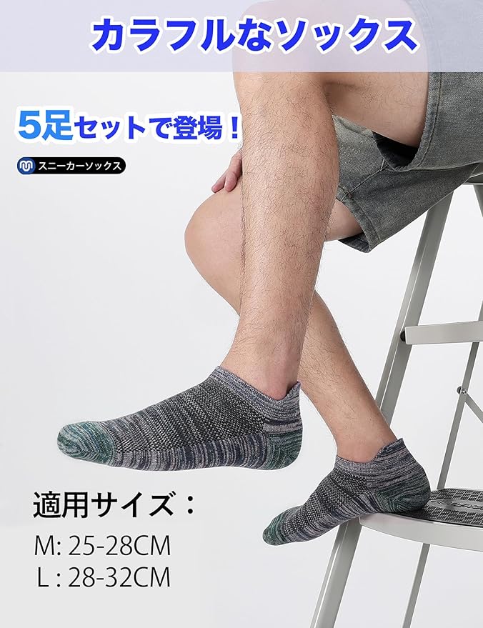 [CLOSEMATE] ソックス 靴下 メンズ くるぶしソックス 防臭吸汗 アンクルソックス 春夏用 スニーカーソックス 大きいサイズ カラフル 5足組 カジュアル スポーツ 綿 ショートソックス 男性 四季適用