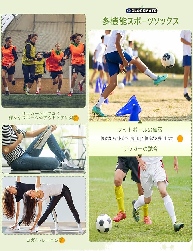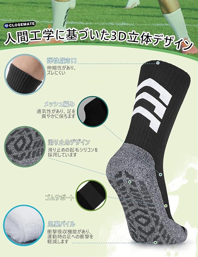[CLOSEMATE] サッカーソックス 靴下 メンズ 滑り止めソックス スポーツ フットボール 防臭吸汗 グリップソックス 吸湿速乾 靴下 パイル 3足 バスケットボール ハイキング ランニング