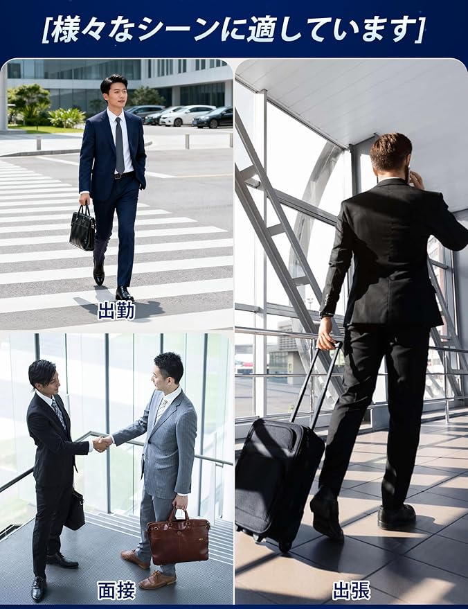 【様々シーン】シンプルな単色デザインを採用し、スーツ、チノパン、カジュアルパンツなど様々な服饰とも簡単かつ自然に搭配できます。通勤や面接といった正式な場面はもちろん、日常着用にも違和感がなく、いつでもどこでも適切な印象を与える最適な選択肢となります。