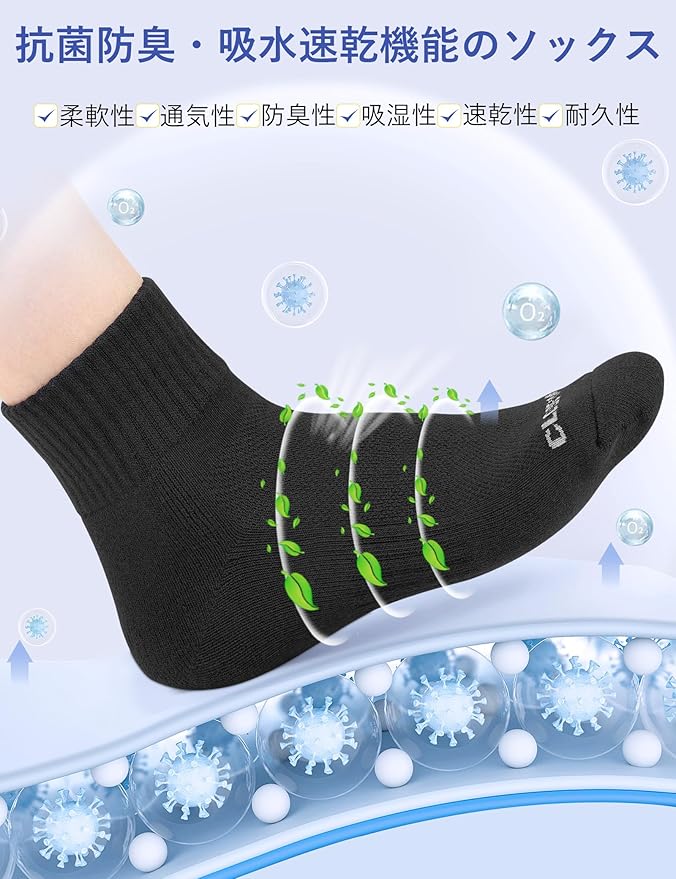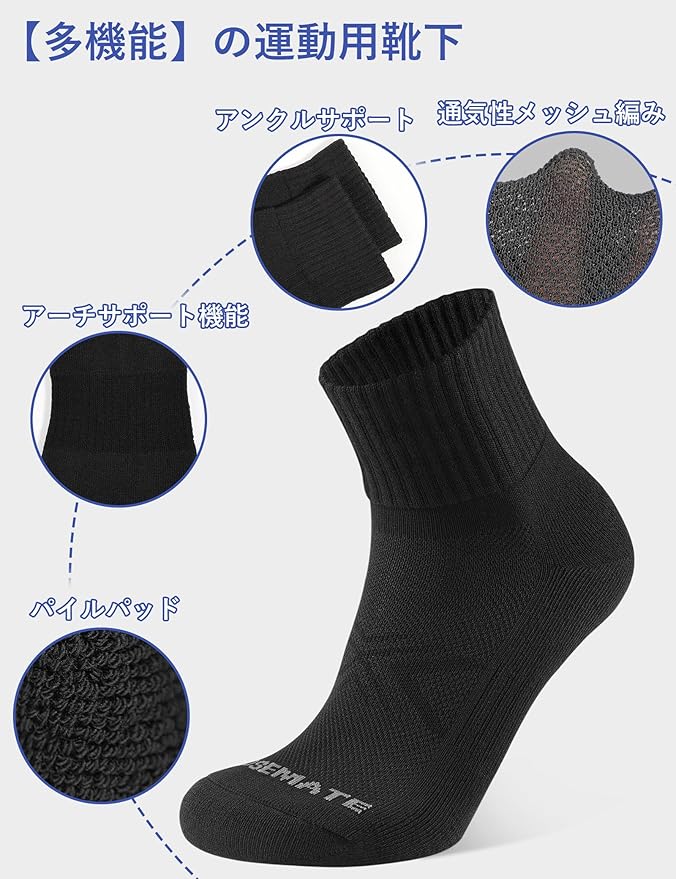 [CLOSEMATE] スポーツソックス 靴下 メンズ くるぶし ランニングソックス 防臭吸汗・吸湿速乾 パイル底 スニーカー用 ショートソックス ゴルフ クォーターレングス丈 綿 ミドル丈 オールシーズン対応