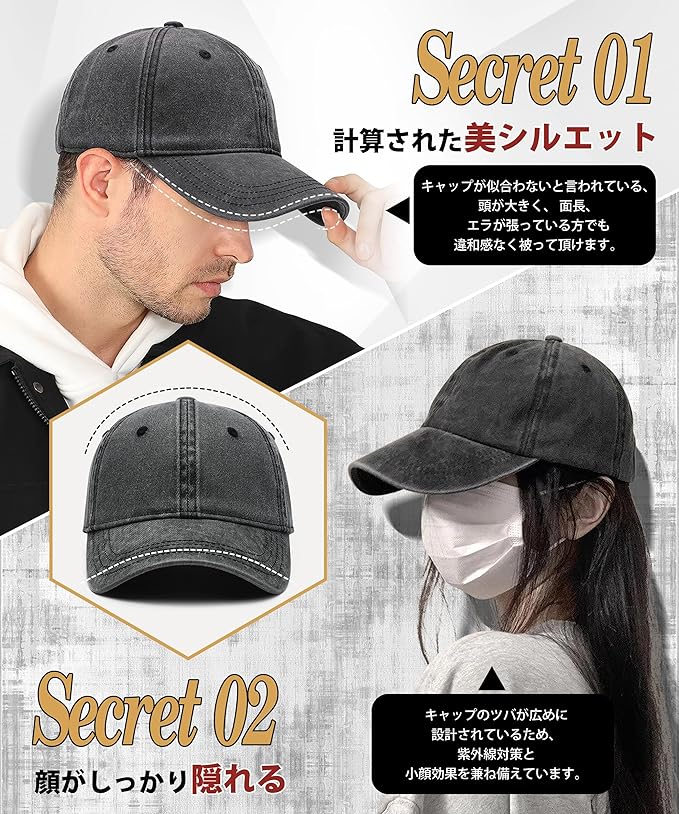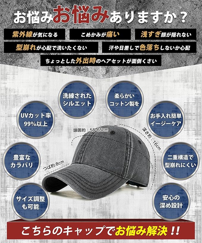 [GAOTEK] 特大58-65cm キャップ メンズ 大きいサイズ 帽子【UPF50+・遮光性測定済み・顔がしっかり隠れる】 野球帽 無地 コットン100% 深めタイプ 紫外線対策 UVカット 人気 男女兼用