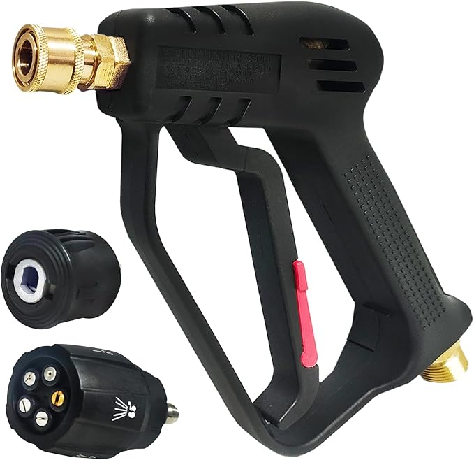 【高品質素材&安全トリガーロック搭載】高圧洗浄ショートガンは、耐久性・耐摩耗性・耐落下性に優れたABS樹脂を採用。内部には高品質真鍮製パーツを使用し、漏れの心配がなく最大4000PSIの高圧にも対応します。さらに、ケルヒャー対応ショートガンには安全トリガーロックを搭載し、誤作動による事故や怪我を防止。洗車作業をより安全に快適に行えます。