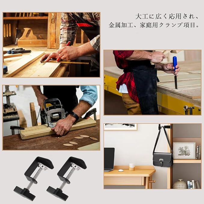 【多様な用途】固定デスクから木工、家具製作までをサポート。さまざまな厚さ、形状の材料をしっかり固定します。家庭でのDIY活動に最適で、多機能ツールとして使用できます。