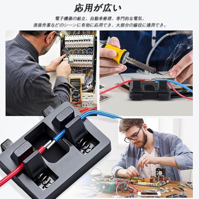 【応用が広い】電子機器の組立、自動車修理、専門的な電気、溶接作業などのシーンに有効に応用でき、大部分の線径に適用でき、専門的な溶接現場でも、家庭電器修理の場面に直面しても、安定した支持を提供することができる。