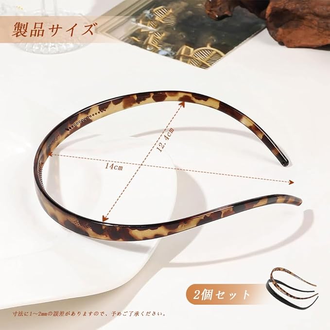 【製品サイズ】カチューシャ2個入、高さ約1 cm/長さ約14.5 cm/幅約12 cm/重量:約12g/個。