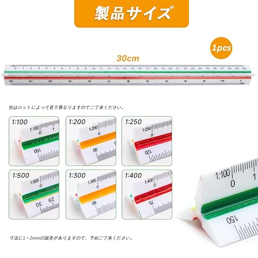 三角スケール 30cm 定規 1本 縮尺 高精度 製図用品 大規模 1/100 1/200 1/250 1/300 1/400 1/500 三角スケール プラスチック製 耐久性 建築士用 工業用スケール