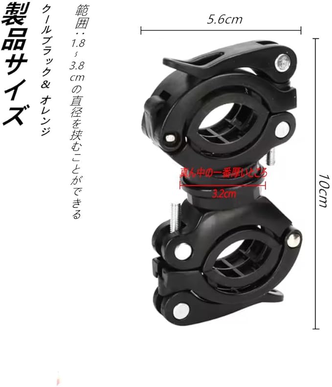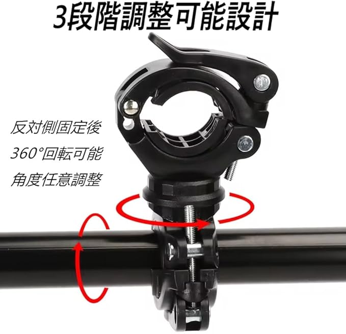 自転車 ライトホルダー 懐中電灯ホルダー 360度回転 サイズ調整可能 固定ブラケット 直径1.8cm-3.8cmライト対応 バイク ヘッドライトブラケット 円形懐中電灯専用 クランプホルダー 操作簡単(黒)