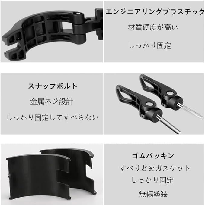 【取り付け簡単】ツール不要、直径18-38mmオートバイ・バイク・自転車などのパイプに取り付け可能、ゴムパッドが付いてので、頑丈で滑り止めになっています。