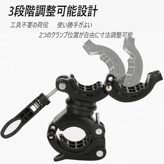 【応用が広い】オートバイ, バイク, 自転車 ハンドルに懐中電灯/LEDライト/ハンディ フラッシュライト/スピーカーを固定できます、 インフレーター、その他の身の回り品の固定に使用できます、ライトのパーツで、夜行、通勤、通学、サイクリングに活躍します。