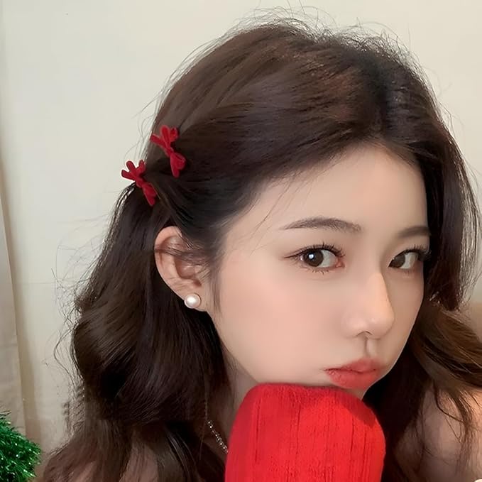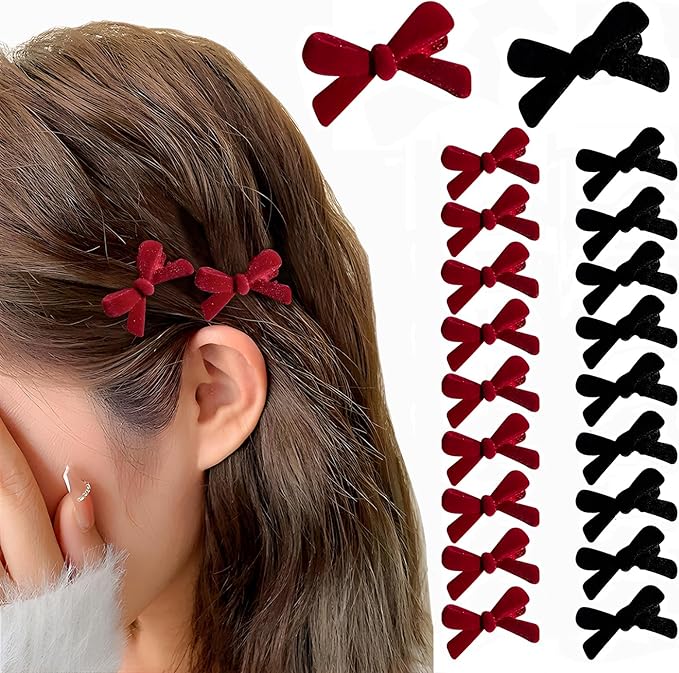 【セット内容・素材】ベルベットの小さなリボンヘアピン20個入(赤+黒)、樹脂素材、手触りが良く、髪を引っ張らない。