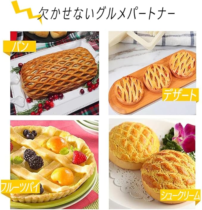 【簡単な操作】クッキー、パイ、タルトなどの生地を伸ばしてメッシュローラーを転がして、切れ込みを入れればきれいなメッシュ状に広げられます、ケーキやタルトにぴったりのグリッドチップを数秒で作成できます