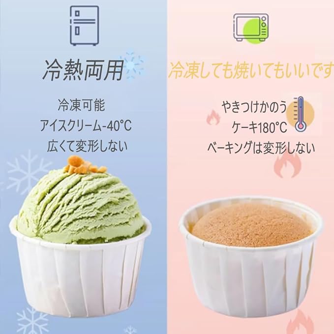 【耐熱】紙の厚さが均一で、直接焼くと漏れず、180 Cの高温に耐えられ、オーブンでも電子レンジでも蒸し器でも、このケーキカップでも使用できます。