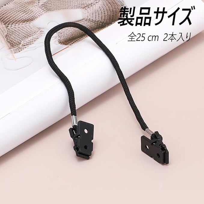 【セット内容・素材】キャップホルダー2本入り(黒)、ポリエステル+プラスチック製で、金属クリップのように服や帽子に跡が残っていないので、使用するのがより安心です。