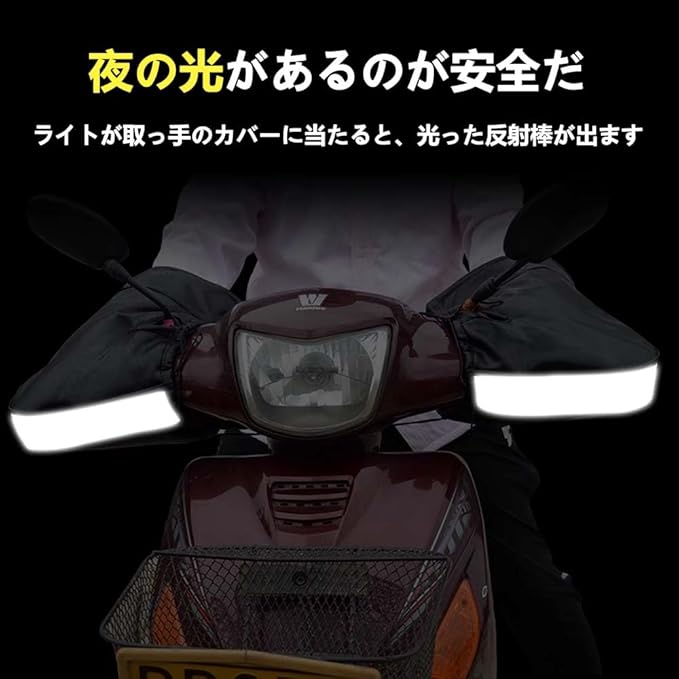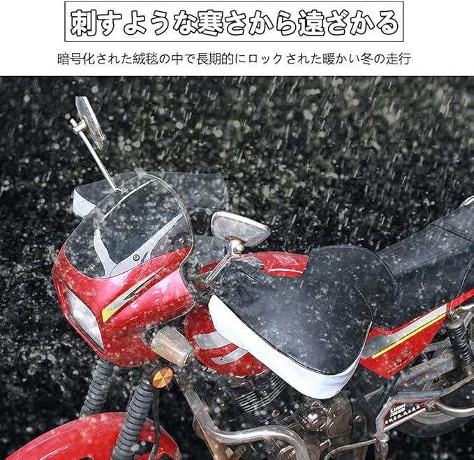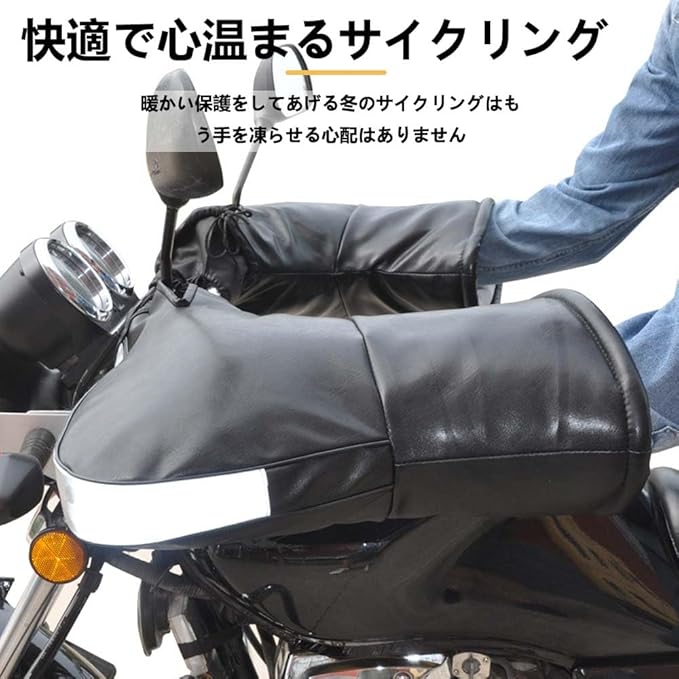 【上質素材】ハンドル手袋PUレザーと高品質素材でできており、耐摩耗性、防水性、手入れが簡単。風雪にも耐えやすく、使用後に取り外しや取り付け直す必要がなく、時間を節約できます。手袋の内側は柔らかく快適で保温性に優れたアップグレードされた厚手のモコモコで作られているので、寒さを恐れません。