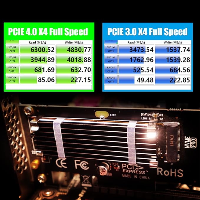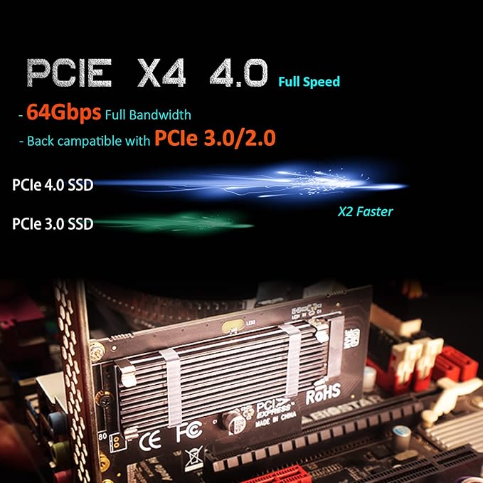 FCCおよびCE認定、高い信頼性、安定したPCIe X4フルスピード:M.2 NVMe SSDの速度は影響を受けないで、マザーボードに取り付けられているのと同じです。