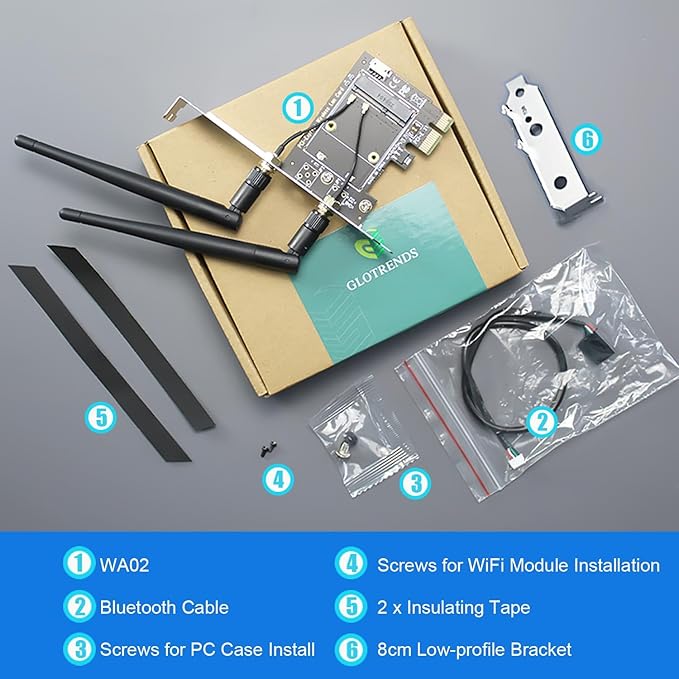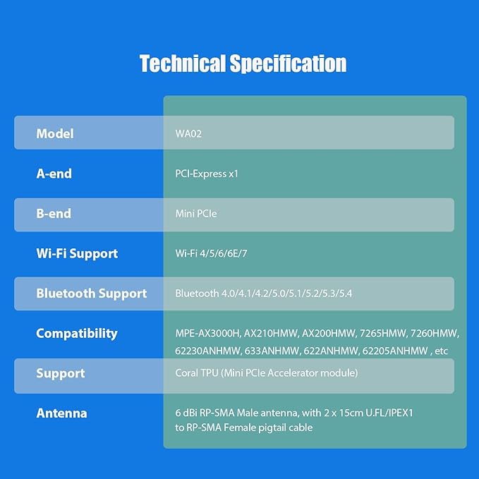 GLOTRENDS WA02 Mini PCIe - PCIe X1 WiFiアダプタ、ハーフハイMini PCIe WiFi 4/5/6/6e/Coral TPU モジュール用、3.5 dBi SMAアンテナ付属