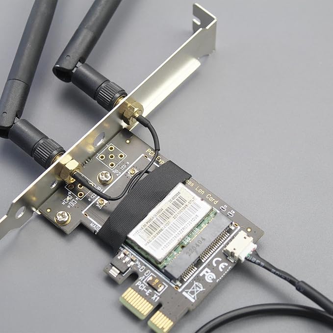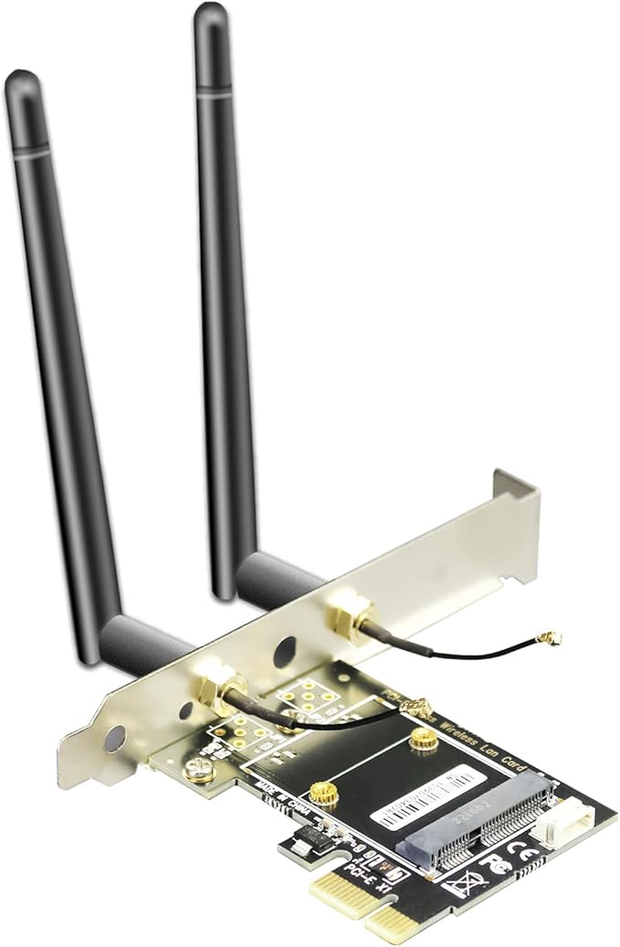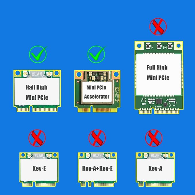 ハーフハイMini PCIeワイヤレスネットワークカード の使用: 例えば、「Intel MPE-AX3000H, AX210HMW, AX200HMW, 7265HMW, 7260HMW, 62230ANHMW, 633ANHMW, 622ANHMW, 62205ANHMWとBroadcom, Realtek, Atheros Mini PCIe 無線ネットワークカード」。WiFi 4/5/6/6E、Bluetooth 4.0/4.1/4.2/5.0/5.1/5.2に対応です。