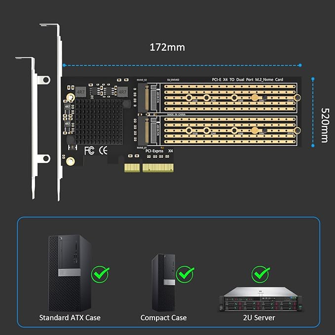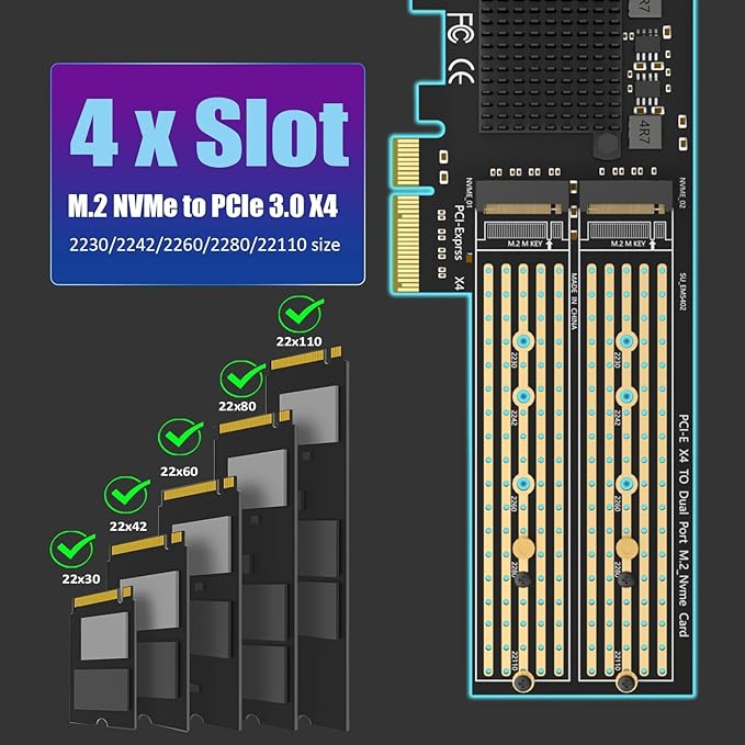 ASM2812チップ内蔵PCIe分岐:それは、あらゆる種類のマザーボード(注意する:PCIeスロットはPCIe X4レーン帯域幅で割り当てられなければなりません)で働くことができます。