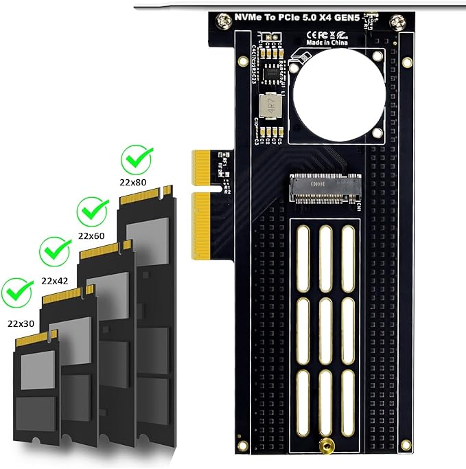 M.2 NVMe - PCIe 5.0 X4アダプタカード: マザーボードのPCIe X4/X8/X16スロットを使用してPCIE 5.0 M.2 NVMe SSDをPC/サーバーに取り付ける。