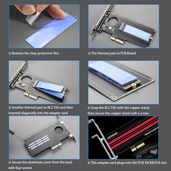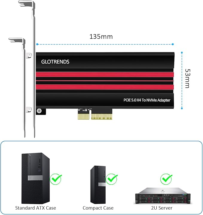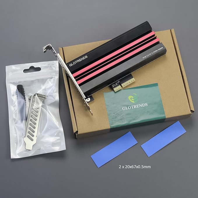 GLOTRENDS PA19 M.2 NVMe - PCIe 5.0 X4アダプタ、M.2 NVMe SSD用、大型アルミヒートシンクカバー、レギュラー/ロープロファイルブラケット