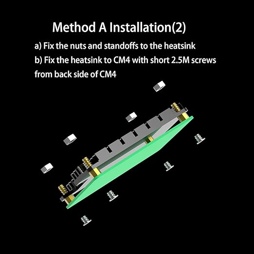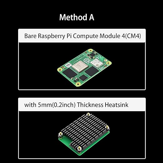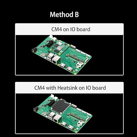 2つの取り付け方法:1.本CM4ヒートシンク(放熱板)をCM4マザーボードに取り付けます。2.このアルミヒートシン CM4とCM4マザーボードは一体でIOボードに取り付けます。